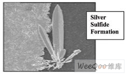 圖1 硫滲過電鍍層和屏蔽層,與銀接觸形成硫化銀 硫化銀是不導(dǎo)電的,而持續(xù)暴露在硫環(huán)境中將意味著更多硫化銀的形成,直到所有的銀都完全轉(zhuǎn)化成硫化銀。導(dǎo)電層將因此被中斷,而該元件將變成開路。對任何汽車或工業(yè)設(shè)備制造商而言,這是一種特別令人沮喪的現(xiàn)象,因為它是一種在制造時完全無法檢測的潛在故障。有些汽車和工業(yè)設(shè)備制造商已經(jīng)通過密封電子設(shè)備,成功地阻止了硫化銀的形成,但要將該方法應(yīng)用于所有情況并不可行,而且這并不是一種能確保防止硫污染的可靠方法。