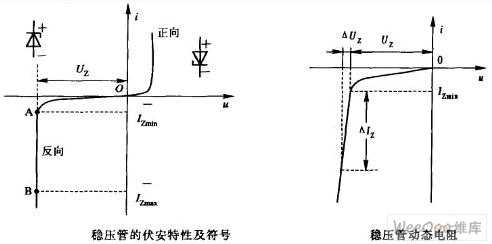 (5)額定功耗Pz 前已指出,工作電流越大,動態(tài)電阻越小,穩(wěn)壓性能越好,但是最大工作電流受到額定功耗Pz的限制,超過P2將會使穩(wěn)壓管損壞。