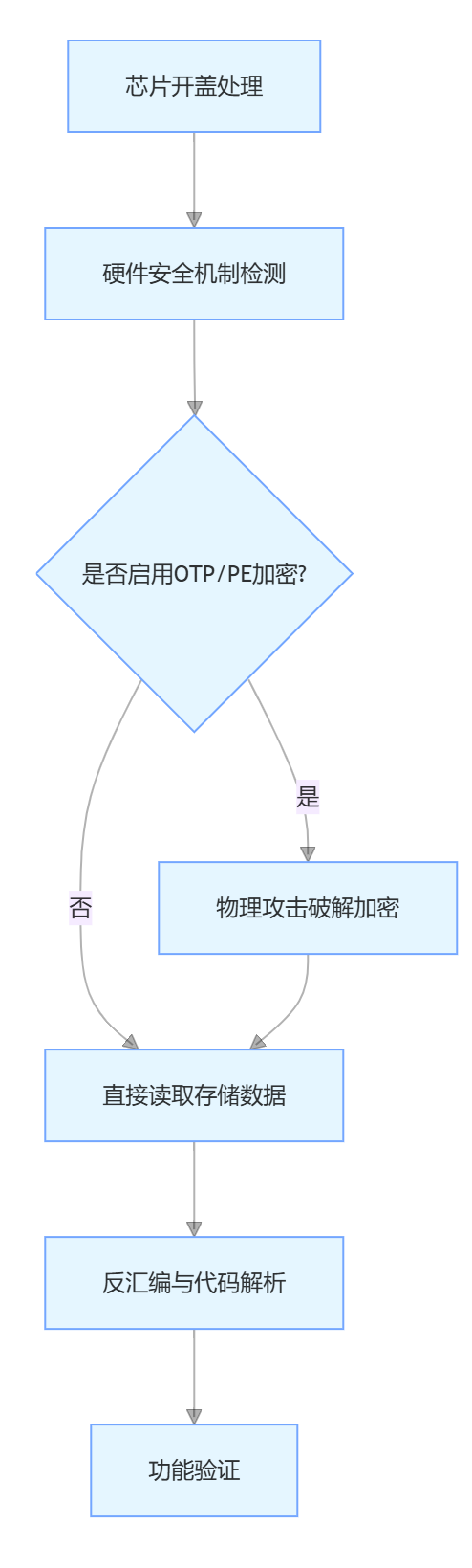 - 電壓毛刺攻擊:在 VDD 引腳施加瞬時高壓脈沖(5V→7V→5V,持續(xù) 100ns),干擾 OTP 校驗邏輯